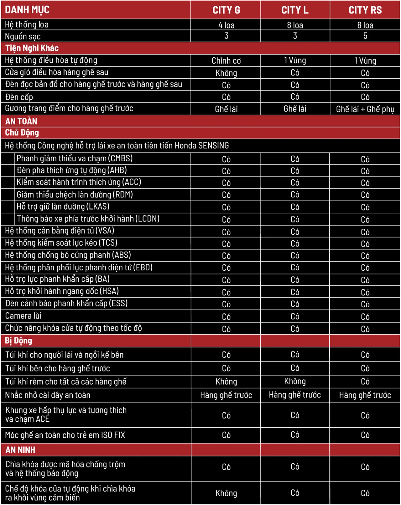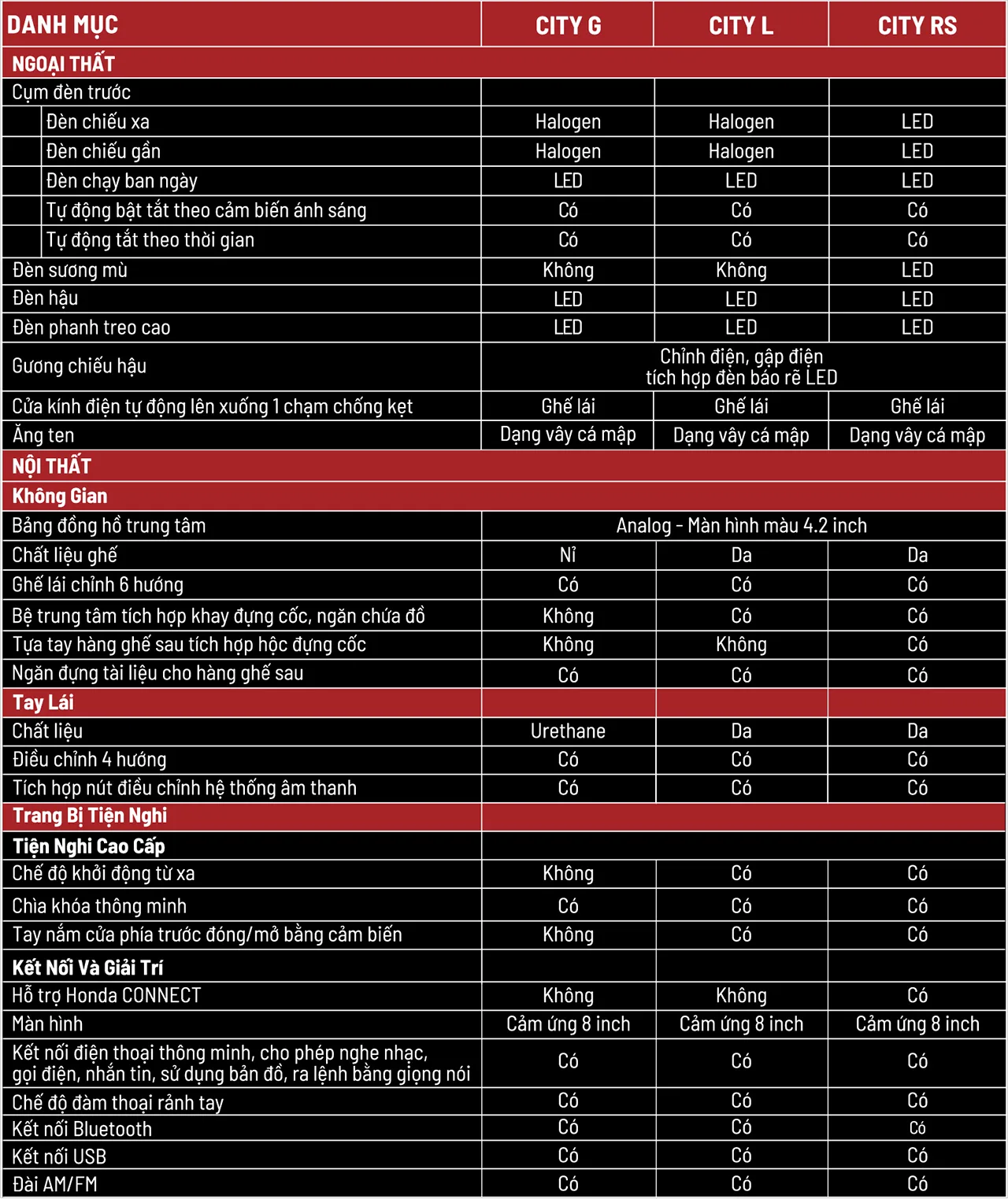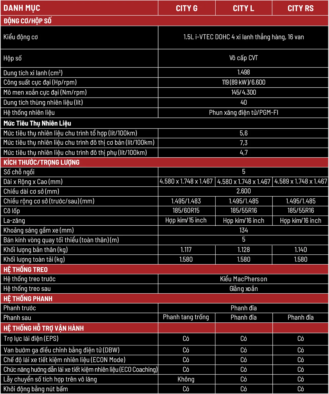 Thông số của Honda City